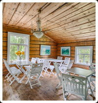 Punainen juhlahuvila VanamoSuositushenkilömäärä 40- 60 henkilöä. Juhlahuvila Vanamo -pakettiin sisältyy kesäkeittiö ja eri korvauksesta perinnesauna tai maasauna ja kylpytynnyri. |